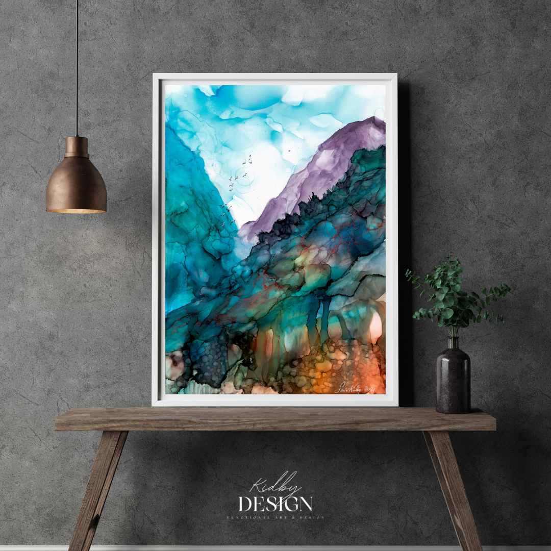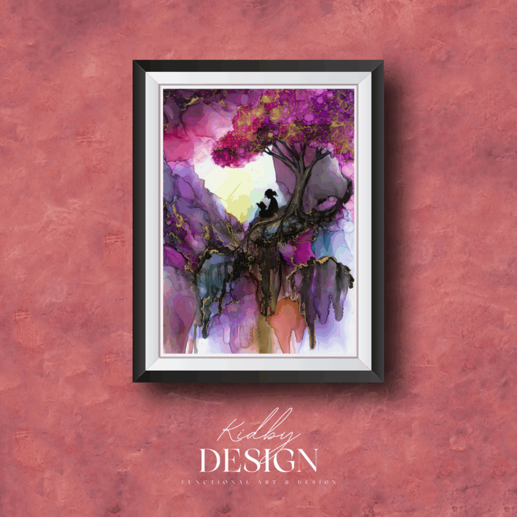 Jag heter Sara Kidby och är mixed mediakonstnär och driver Kidby Design där jag främst skapar med alcohol ink och epoxi resin. Min konst präglas av ett färgstarkt uttryck och en stark nyfikenhet på materialens möjligheter – särskilt när de kombineras och får samspela på olika sätt.
