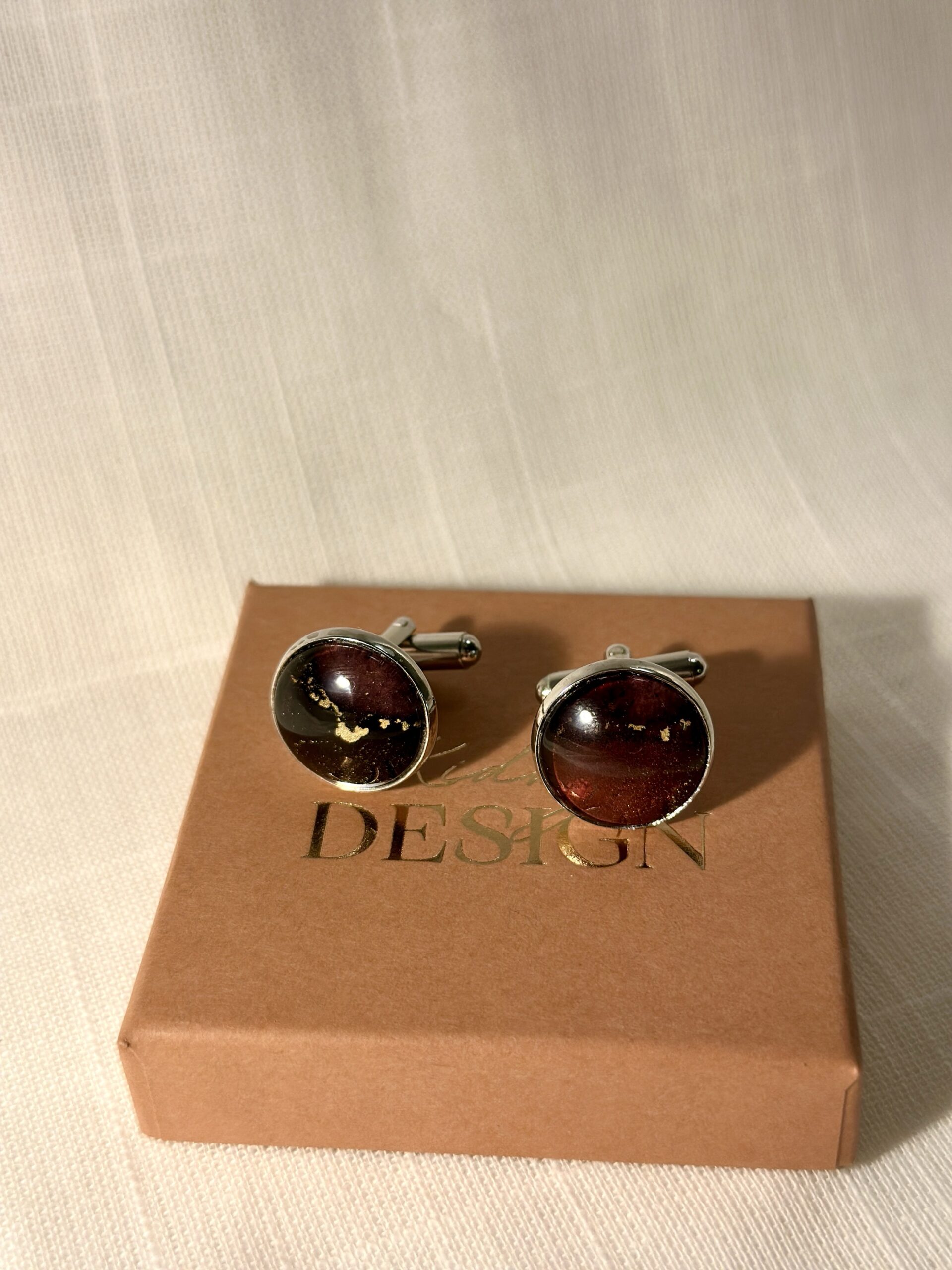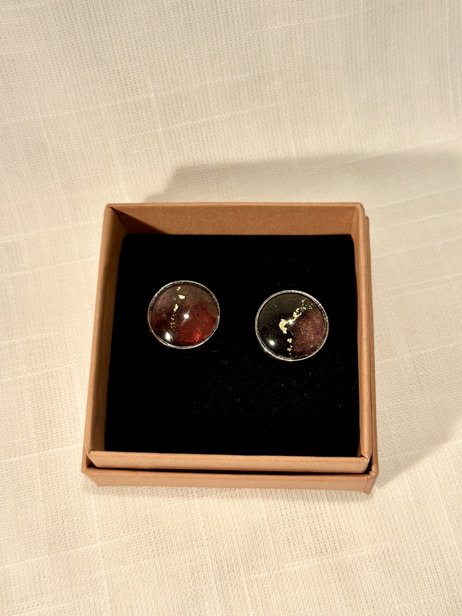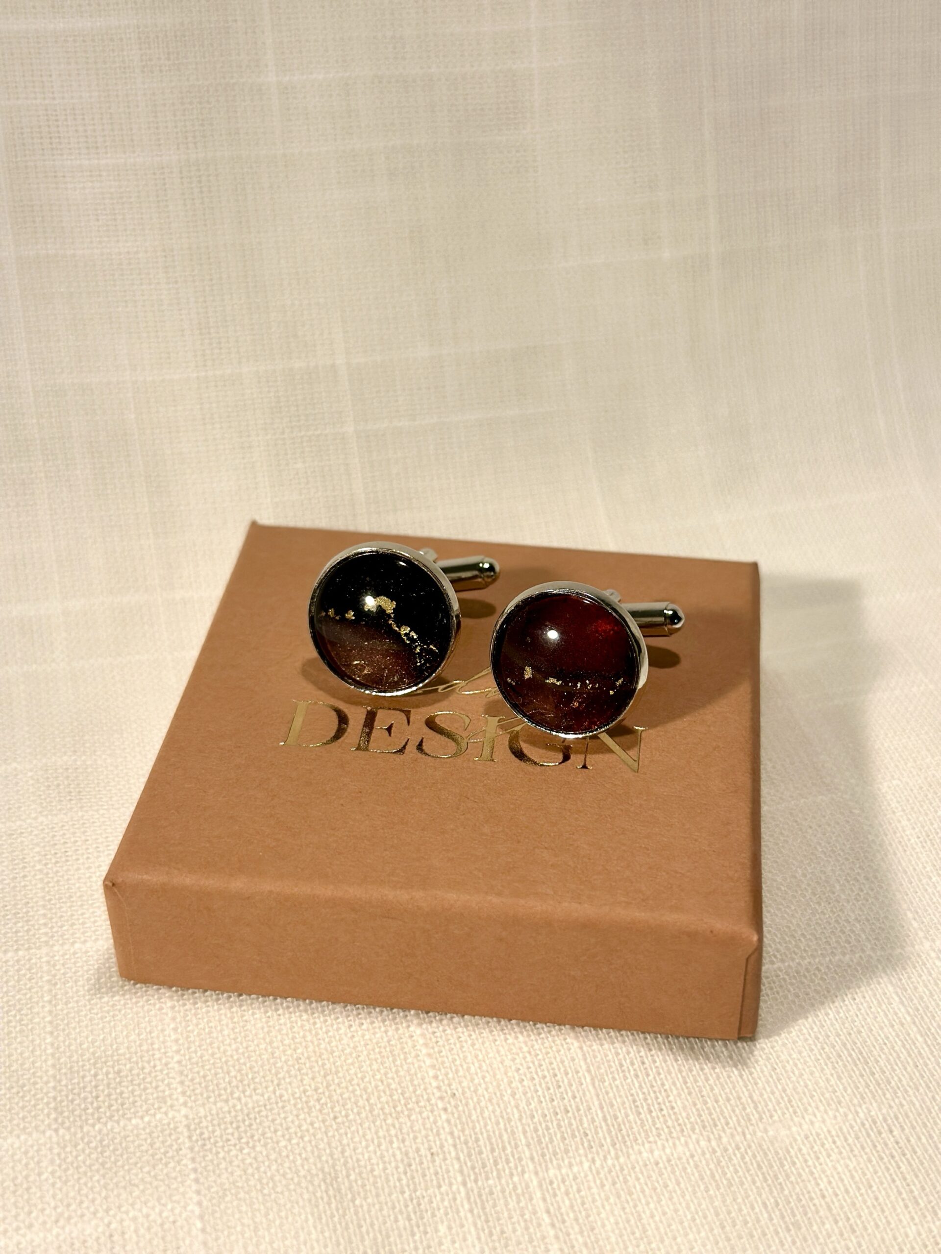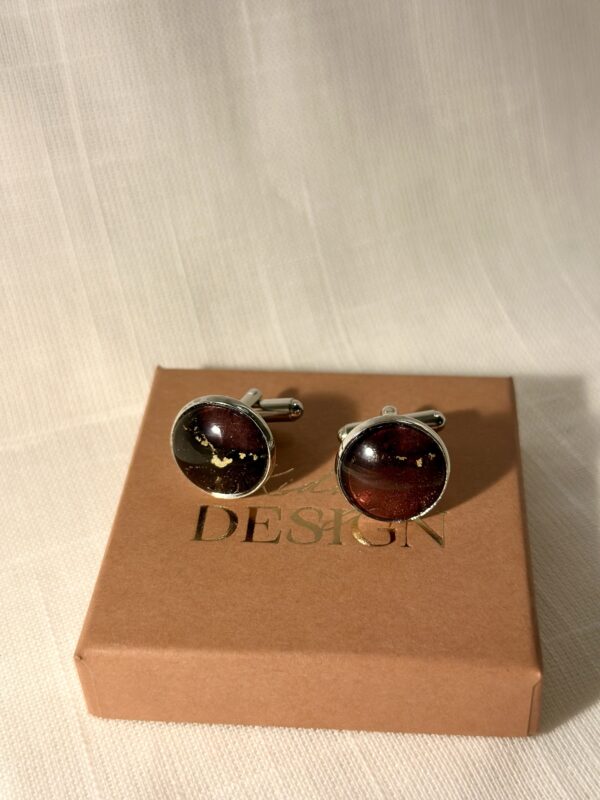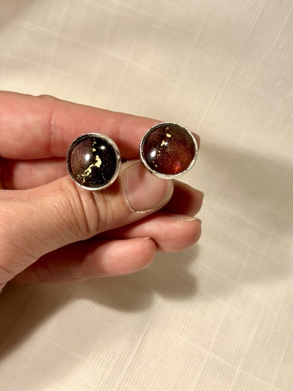 Handgjorda manschettknappar, silverfärgade (16mm). Målade med alcohol ink vilket gör varje knapp unik. Bas i rostfritt stål.